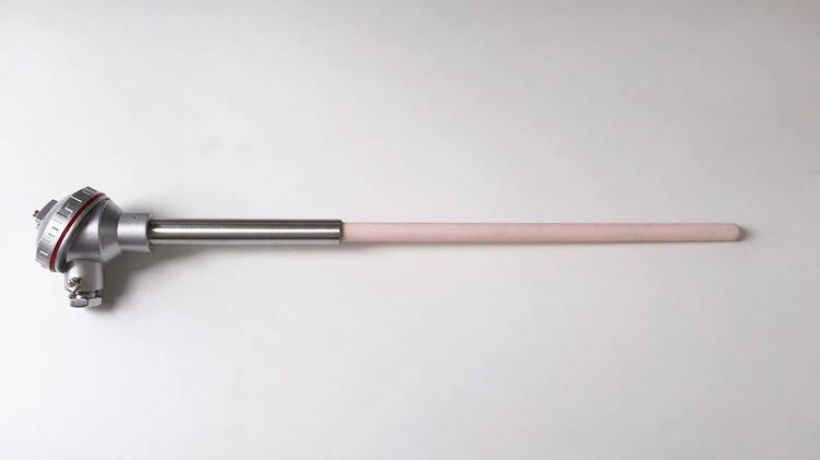 Платинено-родиевата термодвойка приема платина с висока чистота от благороден метал като отрицателен полюс, платинено-родиева сплав като положителен полюс, широко използвана в праховата металургия, синтеровани ярка пещ, вакуумна пещ, топене и различни огнеупорни материали, керамика, порцелан и изпичане, Материалът на външната тръба е корунд, температурата на измерване е 0-1800°C.